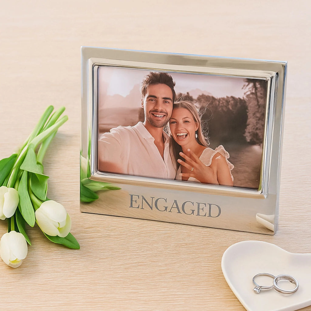 Our Signature Collection was made for engraved statements. Memorialize that special moment with our "Engaged" Signature 4x6 Picture Frame. Crafted from handcrafted aluminum, this timeless frame is the perfect way to showcase a favorite engagement photo. A meaningful gift for the happy couple and a keepsake they’ll treasure forever.